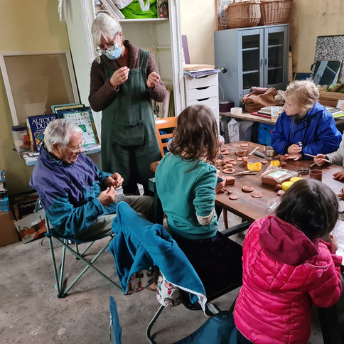 Les enfants et habitants ont exploité toute leur créativité en réalisant un travail d'empreinte végétale sur l'argile à partir des éléments récoltés dans le jardin (feuilles, branche, fleurs), qu'ils ont pu ramener chez eux.